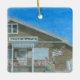 Hanging ornament featuring a watercolor painting of a classic New England general store in Biddeford Pool, Maine. Artwork: Watercolor and pencil on graphite. ©Dominic A. White. All rights reserved.