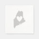 Featuring the outline silhouette map shape of the Pine Tree state of Maine filled in with a solid gray background and a big heart cut out of the middle these Maine heart napkins are great for sharing that Mainer love with your guests at the party.