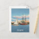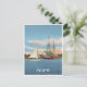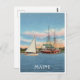 Maine vintage nautical scene from a 1940s postcard image shows boats on the river near Kennebunkport.