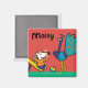 This image from the book "Maisy Goes to Preschool" (illustrated by Lucy Cousins and published by Candlewick Press) features a number of classic Maisy characters. Maisy and friends enjoy time at the playground; they all gather around the bright yellow and blue slide while Mr. Peacock applauds from below.