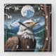 Majestic Bald Eagle in Snowy Mountain Landscape Square Wall Clock