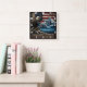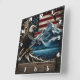 Majestic Bald Eagle Perched by Mountains and Flag Square Wall Clock