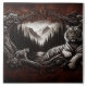 Two Bengal tigers relax in a tranquil forest, surrounded by mountains and intricate floral designs, capturing nature's beauty and the tiger's majesty.