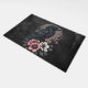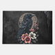 Majestic black raven sitting proudly amidst a lush cluster of delicate flowers. The raven, with its pointed beak and piercing red eye, exudes a mysterious aura. Its feathers are meticulously detailed in a realistic style, highlighting the texture and shine of its plumage. Around it unfolds a harmonious interplay of delicate flowers in soft pink and white tones. The petals of the flowers are soft and delicate, they almost seem to whisper in the soft light. This contrasting composition between the powerful raven and the fragile flowers creates a fascinating balance between strength and grace,