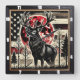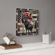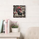 This square wall clock features a majestic deer with impressive antlers, standing prominently within a mystical forest scene. The artistic design showcases tall trees and a stylized moon or sun, creating a captivating woodland theme. This decorative piece brings vibrant nature art and a rustic yet modern style to any home decor.