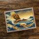 A painting showcasing an eagle in flight above a crashing wave, depicted in a beautiful abstract style with intricate wood carving, oil paint, and hints of gold and marble. symbolizing strength, patriotism, and freedom.