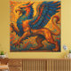 A stunning oil painting depicting the legendary griffin, a powerful mythological creature from Greek mythology combining the regal features of an eagle and the strength of a lion. This vibrant artwork showcases the griffin in rich, bold colors with masterful brushwork characteristic of traditional oil painting techniques. The creature is rendered with intricate detail, featuring magnificent feathered wings, sharp talons, and an fierce yet noble expression that captures the essence of this ancient guardian beast from classical mythology.