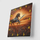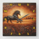Majestic Horse Galloping Through Golden Fields Square Wall Clock