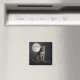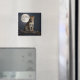A powerful leopard with piercing yellow eyes and a sleek, spotted coat sits majestically on a stark, solitary branch. One paw dangles artfully across the center of the illustration, hinting at movement. Behind him, a vast, luminous harvest moon hangs in the inky night sky, casting an ethereal glow. Awesome magnet for anyone who loves leopards.