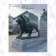This postcard features a view of a majestic lion statue in Brussels, Belgium. Photo credit: Kamran Abbasov, 2022.