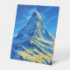 This digital artwork captures the majestic Matterhorn, a iconic alpine peak straddling the Swiss-Italian border. Rendered in a vibrant, impressionistic style, the painting emphasizes the mountain’s grandeur through a dynamic interplay of light and color. The summit glows with golden-yellow hues.