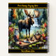 In a vibrant forest, a majestic moose stands by a shimmering waterfall. Surrounded by colorful foliage, nature's beauty blends with rustic elements on a wooden table nearby.