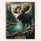 Majestic moose standing by a serene forest river notebook