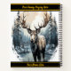 A magnificent moose stands gracefully near a serene lake, surrounded by tall trees in a wintery landscape, embodying nature's tranquility.