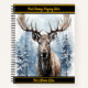 A magnificent moose gazes curiously through the snow-dusted trees, embodying the wild spirit of winter in a tranquil forest setting.