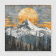 This bold mountain greeting card showcases a towering snow-capped peak set against a textured golden sun and a misty, distressed sky. Dark pine forests in the foreground add depth and contrast, creating a dramatic wilderness scene with a rustic, bohemian touch. The rich blend of cool mountain tones and warm golden hues makes this versatile. A unique gift idea for outdoor adventurers, hikers, campers, nature lovers, or anyone who appreciates modern rustic landscapes. Ideal for birthdays, holidays, or seasonal gift giving.