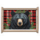 A beautiful, majestic Northern Black Bear set on a rustic red, black and white plaid background. The bear with it's strong, sleek features and rich black fur is the focal point of this design. The Bear's expression conveys a sense of confidence and calmness that adds to the rustic charm, contrasting beautifully against the plaid backdrop. This cottage country inspired design enhances the bear's natural beauty and would be perfect for any home or cottage decor.