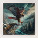 Capture the untamed spirit of the wilderness with this breathtaking AI-generated image featuring a magnificent red-tailed hawk. Poised mid-flight, its powerful wings spread wide, the hawk descends towards a gnarled, snow-dusted branch overlooking a vibrant turquoise river winding through a serene winter mountain valley. Towering snow-capped peaks frame the dramatic scene under a vast, cloud-streaked sky dominated by a luminous moon. This stunning artwork embodies strength, freedom, and the raw beauty of nature, making it a captivating design for a wide range of products. Perfect for nature lovers, bird enthusiasts, or anyone who appreciates striking wildlife art. Bring the grandeur of the mountains and the grace of this majestic raptor into your home or onto your everyday items.