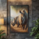 A beautiful painting capturing the essence of rhinos gracefully grazing in a lush field, their powerful presence and peaceful demeanor portrayed in
