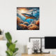 A powerful shark gracefully swims over vibrant coral reefs in the ocean depths, showcasing the beauty of marine life in a dynamic painting.