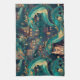 Majestic Teal Dragons and Village Kitchen Towel