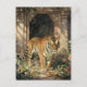 A postcard to say hi and keep in touch with friends and family with a majestic illustration of a golden tiger walking through the ancient dunes, sunlight streaking through.