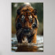 Bring the beauty of wildlife into your space with this stunning poster featuring a majestic tiger gracefully walking through shimmering water under the sun. Perfect for animal lovers and nature enthusiasts alike.