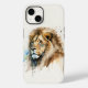 This majestic lion has beautiful, soft watercolors that capture a soulful look on this magnificent creature.