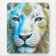 White and gold jeweled lion fantasy ai art. intricate details, royal vibes.