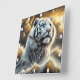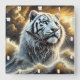 Majestic White Tiger Stormy Ocean Background Square Wall Clock