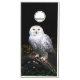 Animal portrait photograph of majestic snowy owl standing on a branch.