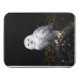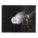 Animal portrait photograph of majestic snowy owl standing on a branch.