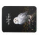 Animal portrait photograph of majestic snowy owl standing on a branch with a personalizable custom name monogram above.