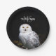 Majestic winter snowy owl monogram custom name paper plates