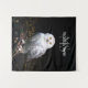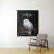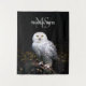 Animal portrait photograph of majestic snowy owl standing on a branch with a personalizable custom name monogram above.