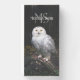 Animal portrait photograph of majestic snowy owl standing on a branch with a personalizable custom name monogram above.