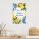 Mediterranean Majolica blue tiles lemons birthday party editable template welcome sign poster digital download, Italian style Capri, Amalfi Coast, Sicilia themed party welcome sign for summer functions.