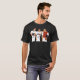My 11 yo wore adult XL (5’7” 165#). The 8yo is small framed. She wore adult small and tied it in the back. Grandma wore adult large with long sleeve shirt underneath. Tall girl adult medium. Dark haired male adult large. Good quality dark Heather gray, Gildan brand shirt. -it was next up from basic choice and cost about $20 per shirt. Not too thick or thin. Washed and dried well, no major shrinkage. Not see-through. Can wear a bra under it fine. Screen print is just as shown and well done, front and back.