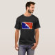 My 11 yo wore adult XL (5’7” 165#). The 8yo is small framed. She wore adult small and tied it in the back. Grandma wore adult large with long sleeve shirt underneath. Tall girl adult medium. Dark haired male adult large. Good quality dark Heather gray, Gildan brand shirt. -it was next up from basic choice and cost about $20 per shirt. Not too thick or thin. Washed and dried well, no major shrinkage. Not see-through. Can wear a bra under it fine. Screen print is just as shown and well done, front and back.