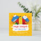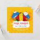 Makar Sankranti celebration invitation. Gold and yellow background with red and blue kites.