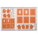 Make 2 small picture frames with this fat quarter of Zazzle fabric! This fat quarter has 10 panels of fabric laid out for each pumpkin orange photo frame, for making WASHABLE, NO SEW, FABRIC PICTURE FRAMES, for photo sizes 1 1/2" x 2 1/2" and 2 1/2" x 3 1/2" - wallet sized! AND - the smallest frame is a convertible frame, meaning you can take the strut leg pocket, that allows the frame to be tabletop, remove it from its velcro / hook & loop connections, and insert a stainless steel, bar pin back, that is removable! The back panel has velcro for the strut leg pocket at its top and a bottom right connection for the ribbon to be removed too, AND has 2 holes to hang the frame, as well as 2 vertical holes to allow for the pin back's mechanism to push through and stay in place! There is a pocket up front for the mat board OR cardboard easel back board, as well as the photo and its photo sleeve, a ACID FREE, CLEAR, SHEET PROTECTOR PAGE cut to the size of the photo! Velcro / hoko & loop is cut down & glued at the top inside between the inside front frame panel, called the 2nd inside frame front border, or 2nd Inside FFB, and the top facing frame middle panel or FM All of the fabric panels are labeled what they are, have seam allowances around the main panel parts to cut around, lines to cut along to cut away excess corner fabric, circles to indicate holes to be poked and cut out, areas marked for where to put the velcro / hook & loop - for both frames! Easel back and strut leg board patterns are ON the fabric, as well, just cut out, and transfer to mat board or cardboard. The holes on 3 of the 10 panels, for each frame, get 1/8" skinny ribbon thread through them, to connect all 3 panels, making the photo pocket. SUPPLIES NEEDED: THERMOWEB HEAT N BOND at least 1 yard x 17" wide, sold for $1.99 / yard at JoAnn Fabrics, in 1 yard pack at JoAnn, in a 5 yard roll 17" wide at Michaels or michaels.com for $8.99, make sure to use a 40% or 50% off coupon or sale to save money. It's also available at joann.com, Walmart.com Thermoweb Heat n Bond Lite OR Ultrahold - I use Ultrahold - it is acid free, perfect for this project, being that it's for photo. Heat n Bond is a paper backed, iron on, fabric glue fusbible web that gets ironed to the back of the fabric panels - it is used for your PATTERNS! Just take sheet protectors, 4 or 5, and trace over the whole panel pattern, including the seam allowance. Flip the sheet protector page pattern OR clear vinyl pattern, if you want, and transfer both the outer seam allowance line AND inner panel, onto the paper back side of the Heat n Bond. Use straight pins, poke through from the front, at all the corners, 4 corners on 6 panels, and 5 corners on the strut leg panels, flip the fabric over to the back, and center your Heat n Bond patterns, glue side down, between the pins. NOTE: For strut leg panels, make sure you trace over those 2 horizontal lines angled inside the strut leg Heat n Bond patterns. Then when you make the Heat n Bond strut leg panel patterns, cut away that center strip, BUT use it as a gauge to place the remaining top and bottom parts of the strut leg Heat n Bond patterns in place. That area where the center strip was removed will be clear of Heat n Bond, and will allow the strut leg pocket to BEND out, to pitch, for the frame to stand on a table or shelf! RIBBON: 2 lengths, 2 feet each by 1/8" wide for each frame, for connecting the 3 panels for the photo pocket 2 lengths, 9" long by 3/8" wide for each frame, for connecting the bottom right corners of the strut leg pocket, between the layers, and between the easel back, and frame middle panels, with velcro / hook & loop on the smallest frame MAT BOARD or cardboard at least a piece 6" x 4", can be bought at Michaels for $5 for 20x30" piece, 8x10" scrap for $1 at JoAnn Fabric superstores in the framing department, or AC Moore $8 for a 32x40" board - 1/16" thick hot glue sticks 15, low temp hot glue gun iron printer paper, ruler, pen or pencil paper scissors fabric scissors EMBROIDERY SCISSORS - IMPORTANT! $10 at Michaels or JoAnns, recommend Gingher brand - this will allow you to poke into those circles and cut out the holes on the 3 panels that make the photo pocket - do this AFTER you have ironed the Heat n Bond patterns to the back SHEET PROTECTOR PAGES - 50 pack, make sure the pack is labeled acid free, can be found at Walmart or Walgreens for under $4, $5 at Target STAINLESS STEEL METAL BAR STYLE PIN BACKS, PACKS OF 10, 44, 48 AT Michaels, michaels.com, AC Moore, under $4 per pack, use a store coupon or sale to save. 1 3/4" long each VELCRO / aka HOOK & LOOP white or gray, or black, 1 yard by 3/4" wide sold in JoAnn Fabrics for $1 in their notions area wall section or in their $1 bins - cut the width in half to 3/8" wide or if you can get it to 1/4" wide that's great, too, 1 1/2" long roughly - just cut a length 1 1/2" long, and cut down the middle horizontally, for both hook and loop parts, one set of strips for the photo pocket closure, the other for the attaching of the strut leg pocket to the easel back panel facing out. Then cut a square for both hook and loop 1/2" x 1/2" for joining the ribbon dangling out of the strut leg pocket to the easel back's right bottom corner, folded over twice. LEGEND: FRONT FFB: front frame front border, front of frame, with PW, or picture window - photo area, centered 2nd inside FFB: situated under front FFB, Heat n Bond ironed on side facing up, picture window inner edge hot glued to picture window edge of front FFB - has 7 holes for thread ribbon through, connecting it to the 2 FM or frame middle panels, making the photo pocket FM: frame middle, you get 2, inside facing, or TOP, and facing out, or BOTTOM - the 2nd inside FFB is connected to them on one side, the EB, or easel back panels are connected on the other side of them, for making the easel back board and pin back pocket EB: easel back panels, you get 2, one facing inside, the other facing out, with the