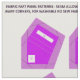 Make 2 small picture frames with this fat quarter of Zazzle fabric! This fat quarter has 10 panels of fabric laid out for each shocking violet / neon purple / orchid frame, for making WASHABLE, NO SEW, FABRIC PICTURE FRAMES, for photo sizes 1 1/2" x 2 1/2" and 2 1/2" x 3 1/2" - wallet sized! AND - the smallest frame is a convertible frame, meaning you can take the strut leg pocket, that allows the frame to be tabletop, remove it from its velcro / hook & loop connections, and insert a stainless steel, bar pin back, that is removable! The back panel has velcro for the strut leg pocket at its top and a bottom right connection for the ribbon to be removed too, AND has 2 holes to hang the frame, as well as 2 vertical holes to allow for the pin back's mechanism to push through and stay in place! There is a pocket up front for the mat board OR cardboard easel back board, as well as the photo and its photo sleeve, a ACID FREE, CLEAR, SHEET PROTECTOR PAGE cut to the size of the photo! Velcro / hoko & loop is cut down & glued at the top inside between the inside front frame panel, called the 2nd inside frame front border, or 2nd Inside FFB, and the top facing frame middle panel or FM All of the fabric panels are labeled what they are, have seam allowances around the main panel parts to cut around, lines to cut along to cut away excess corner fabric, circles to indicate holes to be poked and cut out, areas marked for where to put the velcro / hook & loop - for both frames! Easel back and strut leg board patterns are ON the fabric, as well, just cut out, and transfer to mat board or cardboard. The holes on 3 of the 10 panels, for each frame, get 1/8" skinny ribbon thread through them, to connect all 3 panels, making the photo pocket. SUPPLIES NEEDED: THERMOWEB HEAT N BOND at least 1 yard x 17" wide, sold for $1.99 / yard at JoAnn Fabrics, in 1 yard pack at JoAnn, in a 5 yard roll 17" wide at Michaels or michaels.com for $8.99, make sure to use a 40% or 50% off coupon or sale to save money. It's also available at joann.com, Walmart.com Thermoweb Heat n Bond Lite OR Ultrahold - I use Ultrahold - it is acid free, perfect for this project, being that it's for photo. Heat n Bond is a paper backed, iron on, fabric glue fusbible web that gets ironed to the back of the fabric panels - it is used for your PATTERNS! Just take sheet protectors, 4 or 5, and trace over the whole panel pattern, including the seam allowance. Flip the sheet protector page pattern OR clear vinyl pattern, if you want, and transfer both the outer seam allowance line AND inner panel, onto the paper back side of the Heat n Bond. Use straight pins, poke through from the front, at all the corners, 4 corners on 6 panels, and 5 corners on the strut leg panels, flip the fabric over to the back, and center your Heat n Bond patterns, glue side down, between the pins. NOTE: For strut leg panels, make sure you trace over those 2 horizontal lines angled inside the strut leg Heat n Bond patterns. Then when you make the Heat n Bond strut leg panel patterns, cut away that center strip, BUT use it as a gauge to place the remaining top and bottom parts of the strut leg Heat n Bond patterns in place. That area where the center strip was removed will be clear of Heat n Bond, and will allow the strut leg pocket to BEND out, to pitch, for the frame to stand on a table or shelf! RIBBON: 2 lengths, 2 feet each by 1/8" wide for each frame, for connecting the 3 panels for the photo pocket 2 lengths, 9" long by 3/8" wide for each frame, for connecting the bottom right corners of the strut leg pocket, between the layers, and between the easel back, and frame middle panels, with velcro / hook & loop on the smallest frame MAT BOARD or cardboard at least a piece 6" x 4", can be bought at Michaels for $5 for 20x30" piece, 8x10" scrap for $1 at JoAnn Fabric superstores in the framing department, or AC Moore $8 for a 32x40" board - 1/16" thick hot glue sticks 15, low temp hot glue gun iron printer paper, ruler, pen or pencil paper scissors fabric scissors EMBROIDERY SCISSORS - IMPORTANT! $10 at Michaels or JoAnns, recommend Gingher brand - this will allow you to poke into those circles and cut out the holes on the 3 panels that make the photo pocket - do this AFTER you have ironed the Heat n Bond patterns to the back SHEET PROTECTOR PAGES - 50 pack, make sure the pack is labeled acid free, can be found at Walmart or Walgreens for under $4, $5 at Target STAINLESS STEEL METAL BAR STYLE PIN BACKS, PACKS OF 10, 44, 48 AT Michaels, michaels.com, AC Moore, under $4 per pack, use a store coupon or sale to save. 1 3/4" long each VELCRO / aka HOOK & LOOP white or gray, or black, 1 yard by 3/4" wide sold in JoAnn Fabrics for $1 in their notions area wall section or in their $1 bins - cut the width in half to 3/8" wide or if you can get it to 1/4" wide that's great, too, 1 1/2" long roughly - just cut a length 1 1/2" long, and cut down the middle horizontally, for both hook and loop parts, one set of strips for the photo pocket closure, the other for the attaching of the strut leg pocket to the easel back panel facing out. Then cut a square for both hook and loop 1/2" x 1/2" for joining the ribbon dangling out of the strut leg pocket to the easel back's right bottom corner, folded over twice. LEGEND: FRONT FFB: front frame front border, front of frame, with PW, or picture window - photo area, centered 2nd inside FFB: situated under front FFB, Heat n Bond ironed on side facing up, picture window inner edge hot glued to picture window edge of front FFB - has 7 holes for thread ribbon through, connecting it to the 2 FM or frame middle panels, making the photo pocket FM: frame middle, you get 2, inside facing, or TOP, and facing out, or BOTTOM - the 2nd inside FFB is connected to them on one side, the EB, or easel back panels are connected on the other side of them, for making the easel back board and pin back pocket EB: easel back panels, you get 2, one facing inside, the other fa