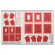 Make 2 small picture frames with this fat quarter of Zazzle fabric! This fat quarter has 10 panels of fabric laid out for each RED photo frame, for making WASHABLE, NO SEW, FABRIC PICTURE FRAMES, for photo sizes 1 1/2" x 2 1/2" and 2 1/2" x 3 1/2" - wallet sized! AND - the smallest frame is a convertible frame, meaning you can take the strut leg pocket, that allows the frame to be tabletop, remove it from its velcro / hook & loop connections, and insert a stainless steel, bar pin back, that is removable! The back panel has velcro for the strut leg pocket at its top and a bottom right connection for the ribbon to be removed too, AND has 2 holes to hang the frame, as well as 2 vertical holes to allow for the pin back's mechanism to push through and stay in place! There is a pocket up front for the mat board OR cardboard easel back board, as well as the photo and its photo sleeve, a ACID FREE, CLEAR, SHEET PROTECTOR PAGE cut to the size of the photo! Velcro / hoko & loop is cut down & glued at the top inside between the inside front frame panel, called the 2nd inside frame front border, or 2nd Inside FFB, and the top facing frame middle panel or FM All of the fabric panels are labeled what they are, have seam allowances around the main panel parts to cut around, lines to cut along to cut away excess corner fabric, circles to indicate holes to be poked and cut out, areas marked for where to put the velcro / hook & loop - for both frames! Easel back and strut leg board patterns are ON the fabric, as well, just cut out, and transfer to mat board or cardboard. The holes on 3 of the 10 panels, for each frame, get 1/8" skinny ribbon thread through them, to connect all 3 panels, making the photo pocket. SUPPLIES NEEDED: THERMOWEB HEAT N BOND at least 1 yard x 17" wide, sold for $1.99 / yard at JoAnn Fabrics, in 1 yard pack at JoAnn, in a 5 yard roll 17" wide at Michaels or michaels.com for $8.99, make sure to use a 40% or 50% off coupon or sale to save money. It's also available at joann.com, Walmart.com Thermoweb Heat n Bond Lite OR Ultrahold - I use Ultrahold - it is acid free, perfect for this project, being that it's for photo. Heat n Bond is a paper backed, iron on, fabric glue fusbible web that gets ironed to the back of the fabric panels - it is used for your PATTERNS! Just take sheet protectors, 4 or 5, and trace over the whole panel pattern, including the seam allowance. Flip the sheet protector page pattern OR clear vinyl pattern, if you want, and transfer both the outer seam allowance line AND inner panel, onto the paper back side of the Heat n Bond. Use straight pins, poke through from the front, at all the corners, 4 corners on 6 panels, and 5 corners on the strut leg panels, flip the fabric over to the back, and center your Heat n Bond patterns, glue side down, between the pins. NOTE: For strut leg panels, make sure you trace over those 2 horizontal lines angled inside the strut leg Heat n Bond patterns. Then when you make the Heat n Bond strut leg panel patterns, cut away that center strip, BUT use it as a gauge to place the remaining top and bottom parts of the strut leg Heat n Bond patterns in place. That area where the center strip was removed will be clear of Heat n Bond, and will allow the strut leg pocket to BEND out, to pitch, for the frame to stand on a table or shelf! RIBBON: 2 lengths, 2 feet each by 1/8" wide for each frame, for connecting the 3 panels for the photo pocket 2 lengths, 9" long by 3/8" wide for each frame, for connecting the bottom right corners of the strut leg pocket, between the layers, and between the easel back, and frame middle panels, with velcro / hook & loop on the smallest frame MAT BOARD or cardboard at least a piece 6" x 4", can be bought at Michaels for $5 for 20x30" piece, 8x10" scrap for $1 at JoAnn Fabric superstores in the framing department, or AC Moore $8 for a 32x40" board - 1/16" thick hot glue sticks 15, low temp hot glue gun iron printer paper, ruler, pen or pencil paper scissors fabric scissors EMBROIDERY SCISSORS - IMPORTANT! $10 at Michaels or JoAnns, recommend Gingher brand - this will allow you to poke into those circles and cut out the holes on the 3 panels that make the photo pocket - do this AFTER you have ironed the Heat n Bond patterns to the back SHEET PROTECTOR PAGES - 50 pack, make sure the pack is labeled acid free, can be found at Walmart or Walgreens for under $4, $5 at Target STAINLESS STEEL METAL BAR STYLE PIN BACKS, PACKS OF 10, 44, 48 AT Michaels, michaels.com, AC Moore, under $4 per pack, use a store coupon or sale to save. 1 3/4" long each VELCRO / aka HOOK & LOOP white or gray, or black, 1 yard by 3/4" wide sold in JoAnn Fabrics for $1 in their notions area wall section or in their $1 bins - cut the width in half to 3/8" wide or if you can get it to 1/4" wide that's great, too, 1 1/2" long roughly - just cut a length 1 1/2" long, and cut down the middle horizontally, for both hook and loop parts, one set of strips for the photo pocket closure, the other for the attaching of the strut leg pocket to the easel back panel facing out. Then cut a square for both hook and loop 1/2" x 1/2" for joining the ribbon dangling out of the strut leg pocket to the easel back's right bottom corner, folded over twice. LEGEND: FRONT FFB: front frame front border, front of frame, with PW, or picture window - photo area, centered 2nd inside FFB: situated under front FFB, Heat n Bond ironed on side facing up, picture window inner edge hot glued to picture window edge of front FFB - has 7 holes for thread ribbon through, connecting it to the 2 FM or frame middle panels, making the photo pocket FM: frame middle, you get 2, inside facing, or TOP, and facing out, or BOTTOM - the 2nd inside FFB is connected to them on one side, the EB, or easel back panels are connected on the other side of them, for making the easel back board and pin back pocket EB: easel back panels, you get 2, one facing inside, the other facing out, with the strut leg 