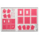 Make 2 small picture frames with this fat quarter of Zazzle fabric! This fat quarter has 10 panels of fabric laid out for each salmon flamingo pink colored photo frame, for making WASHABLE, NO SEW, FABRIC PICTURE FRAMES, for photo sizes 1 1/2" x 2 1/2" and 2 1/2" x 3 1/2" - wallet sized! AND - the smallest frame is a convertible frame, meaning you can take the strut leg pocket, that allows the frame to be tabletop, remove it from its velcro / hook & loop connections, and insert a stainless steel, bar pin back, that is removable! The back panel has velcro for the strut leg pocket at its top and a bottom right connection for the ribbon to be removed too, AND has 2 holes to hang the frame, as well as 2 vertical holes to allow for the pin back's mechanism to push through and stay in place! There is a pocket up front for the mat board OR cardboard easel back board, as well as the photo and its photo sleeve, a ACID FREE, CLEAR, SHEET PROTECTOR PAGE cut to the size of the photo! Velcro / hoko & loop is cut down & glued at the top inside between the inside front frame panel, called the 2nd inside frame front border, or 2nd Inside FFB, and the top facing frame middle panel or FM All of the fabric panels are labeled what they are, have seam allowances around the main panel parts to cut around, lines to cut along to cut away excess corner fabric, circles to indicate holes to be poked and cut out, areas marked for where to put the velcro / hook & loop - for both frames! Easel back and strut leg board patterns are ON the fabric, as well, just cut out, and transfer to mat board or cardboard. The holes on 3 of the 10 panels, for each frame, get 1/8" skinny ribbon thread through them, to connect all 3 panels, making the photo pocket. SUPPLIES NEEDED: THERMOWEB HEAT N BOND at least 1 yard x 17" wide, sold for $1.99 / yard at JoAnn Fabrics, in 1 yard pack at JoAnn, in a 5 yard roll 17" wide at Michaels or michaels.com for $8.99, make sure to use a 40% or 50% off coupon or sale to save money. It's also available at joann.com, Walmart.com Thermoweb Heat n Bond Lite OR Ultrahold - I use Ultrahold - it is acid free, perfect for this project, being that it's for photo. Heat n Bond is a paper backed, iron on, fabric glue fusbible web that gets ironed to the back of the fabric panels - it is used for your PATTERNS! Just take sheet protectors, 4 or 5, and trace over the whole panel pattern, including the seam allowance. Flip the sheet protector page pattern OR clear vinyl pattern, if you want, and transfer both the outer seam allowance line AND inner panel, onto the paper back side of the Heat n Bond. Use straight pins, poke through from the front, at all the corners, 4 corners on 6 panels, and 5 corners on the strut leg panels, flip the fabric over to the back, and center your Heat n Bond patterns, glue side down, between the pins. NOTE: For strut leg panels, make sure you trace over those 2 horizontal lines angled inside the strut leg Heat n Bond patterns. Then when you make the Heat n Bond strut leg panel patterns, cut away that center strip, BUT use it as a gauge to place the remaining top and bottom parts of the strut leg Heat n Bond patterns in place. That area where the center strip was removed will be clear of Heat n Bond, and will allow the strut leg pocket to BEND out, to pitch, for the frame to stand on a table or shelf! RIBBON: 2 lengths, 2 feet each by 1/8" wide for each frame, for connecting the 3 panels for the photo pocket 2 lengths, 9" long by 3/8" wide for each frame, for connecting the bottom right corners of the strut leg pocket, between the layers, and between the easel back, and frame middle panels, with velcro / hook & loop on the smallest frame MAT BOARD or cardboard at least a piece 6" x 4", can be bought at Michaels for $5 for 20x30" piece, 8x10" scrap for $1 at JoAnn Fabric superstores in the framing department, or AC Moore $8 for a 32x40" board - 1/16" thick hot glue sticks 15, low temp hot glue gun iron printer paper, ruler, pen or pencil paper scissors fabric scissors EMBROIDERY SCISSORS - IMPORTANT! $10 at Michaels or JoAnns, recommend Gingher brand - this will allow you to poke into those circles and cut out the holes on the 3 panels that make the photo pocket - do this AFTER you have ironed the Heat n Bond patterns to the back SHEET PROTECTOR PAGES - 50 pack, make sure the pack is labeled acid free, can be found at Walmart or Walgreens for under $4, $5 at Target STAINLESS STEEL METAL BAR STYLE PIN BACKS, PACKS OF 10, 44, 48 AT Michaels, michaels.com, AC Moore, under $4 per pack, use a store coupon or sale to save. 1 3/4" long each VELCRO / aka HOOK & LOOP white or gray, or black, 1 yard by 3/4" wide sold in JoAnn Fabrics for $1 in their notions area wall section or in their $1 bins - cut the width in half to 3/8" wide or if you can get it to 1/4" wide that's great, too, 1 1/2" long roughly - just cut a length 1 1/2" long, and cut down the middle horizontally, for both hook and loop parts, one set of strips for the photo pocket closure, the other for the attaching of the strut leg pocket to the easel back panel facing out. Then cut a square for both hook and loop 1/2" x 1/2" for joining the ribbon dangling out of the strut leg pocket to the easel back's right bottom corner, folded over twice. LEGEND: FRONT FFB: front frame front border, front of frame, with PW, or picture window - photo area, centered 2nd inside FFB: situated under front FFB, Heat n Bond ironed on side facing up, picture window inner edge hot glued to picture window edge of front FFB - has 7 holes for thread ribbon through, connecting it to the 2 FM or frame middle panels, making the photo pocket FM: frame middle, you get 2, inside facing, or TOP, and facing out, or BOTTOM - the 2nd inside FFB is connected to them on one side, the EB, or easel back panels are connected on the other side of them, for making the easel back board and pin back pocket EB: easel back panels, you get 2, one facing inside, the other facing