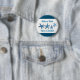 Four blue starfish to make a wish upon appear to dance across this pin-back button. It is nautical in its blue and white design and whimsical with a beach vibe.