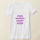 My overall review is that the T-shirt is nice, it fits true to size however the font is significantly smaller than advertised and you can't read it. The printing is unreadable and there is a strain to read it. It does not look like the advertised product. Maybe the shirt color is darker or a larger more visible font should have been used. Photos with and without flash and font is barely legible.