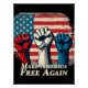 A vivid street-art style image where three bold fists rise against a vintage American flag, echoing a timeless call for freedom, courage, and unity — a visual anthem of resistance and hope.