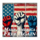 A vivid street-art style image where three bold fists rise against a vintage American flag, echoing a timeless call for freedom, courage, and unity — a visual anthem of resistance and hope.