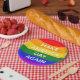 This artwork features a rainbowand the phrase "Make America Gay again".