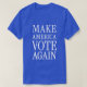 Some politicians want to deprive citizens of a basic civil right. Donald Trump says that when he is elected “in four years, you don’t have to vote again”. Is this really the America you want? This simple sign defends your right to vote, because there is no great America without democracy. The text says: “Make America Vote Again.” Wear it with pride. Available only in blue, in both horizontal and vertical versions. Created by Piotr Kowalczyk. First published: 28.07.2024.